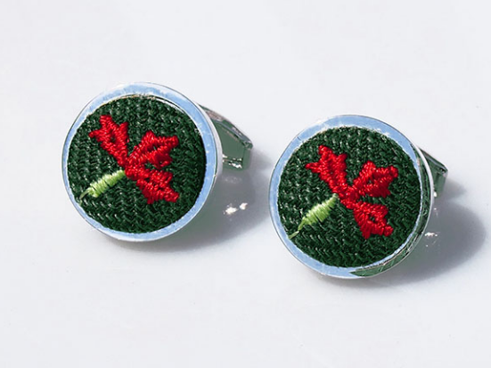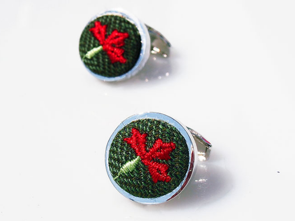 Spinki zielone haft kaszubski czerwono-zielony